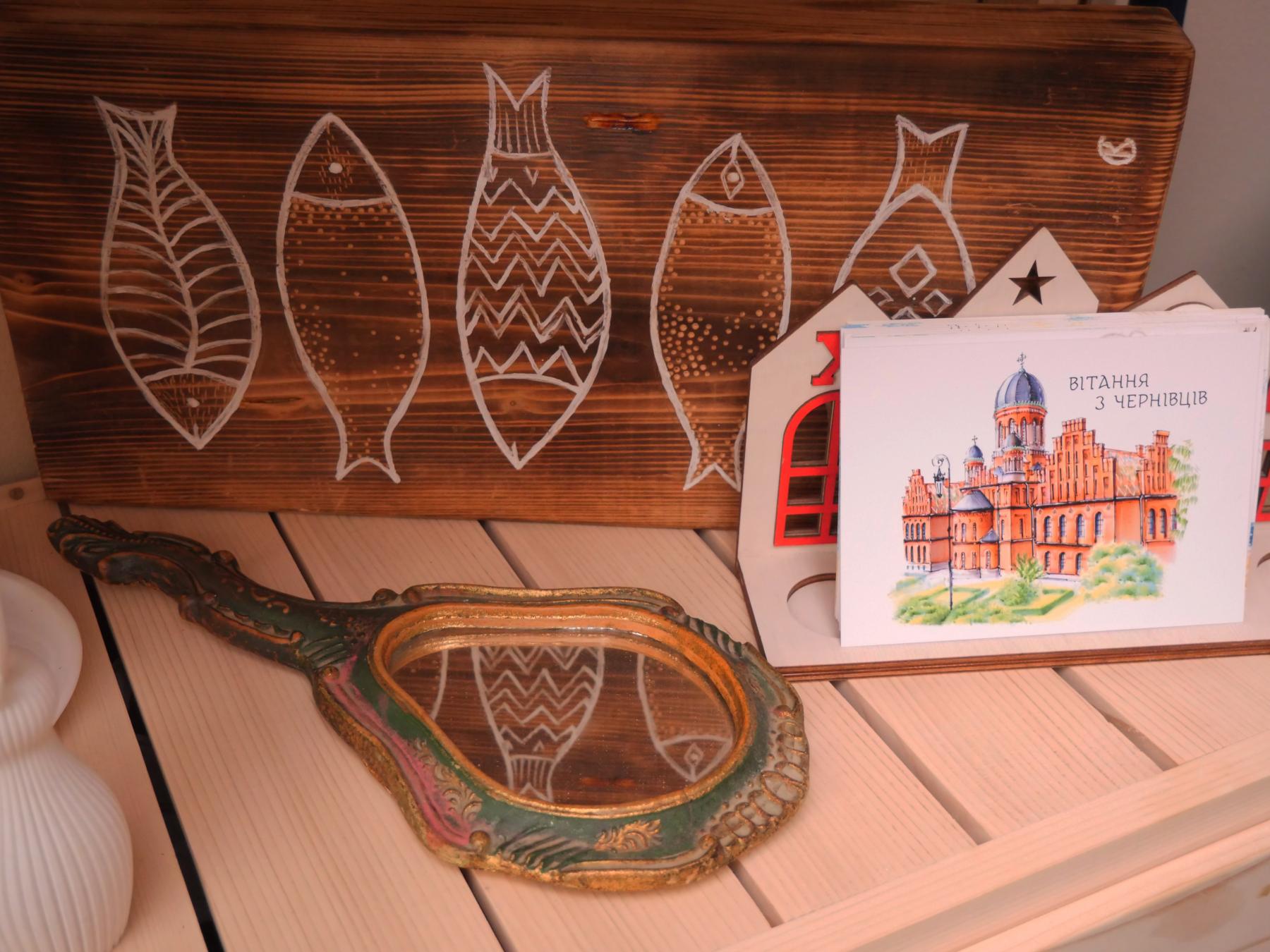 Красиві листівки з Чернівців, мотанки, кераміку, вироби з бісеру, елегантні жіночі прикраси, шеврони, шкарпетки, іграшки, свічки, вироби з лаванди…