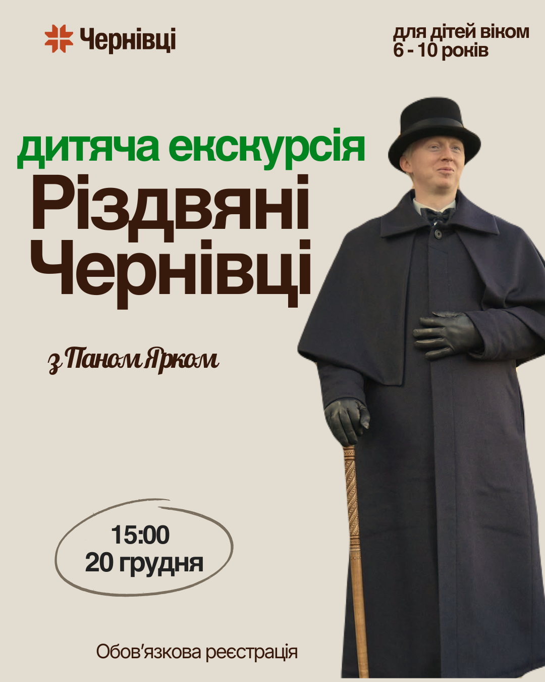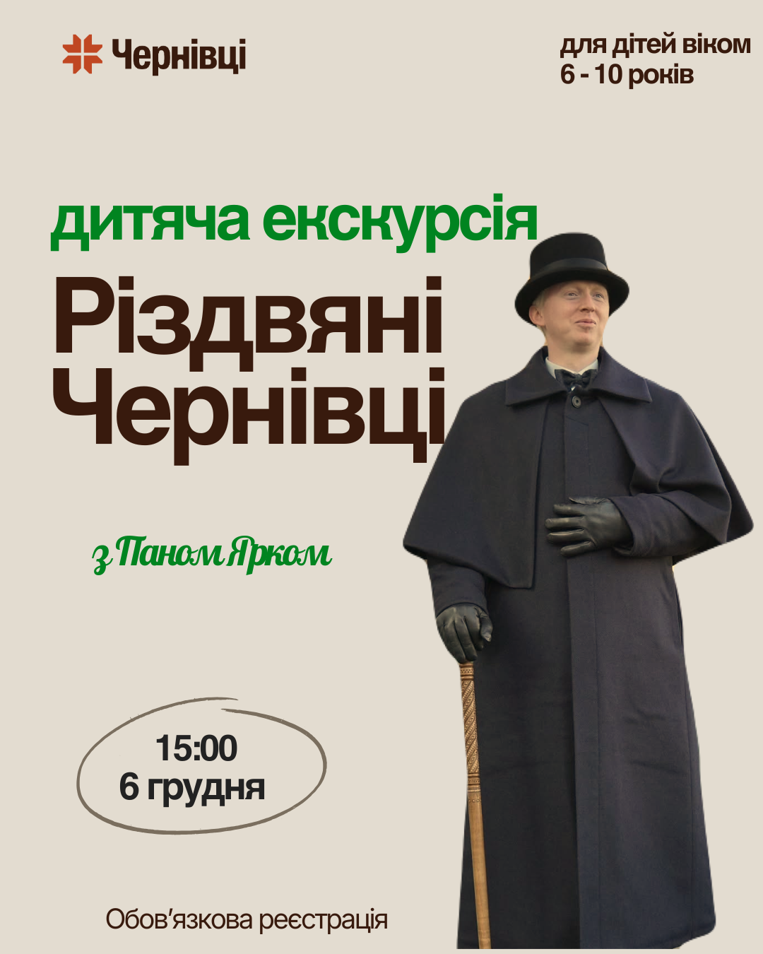 Дитяча екскурсія «Різдвяні Чернівці» з Паном Ярком подарує маленьким екскурсантам святковий настрій, пізнавальні історії та відкриття.