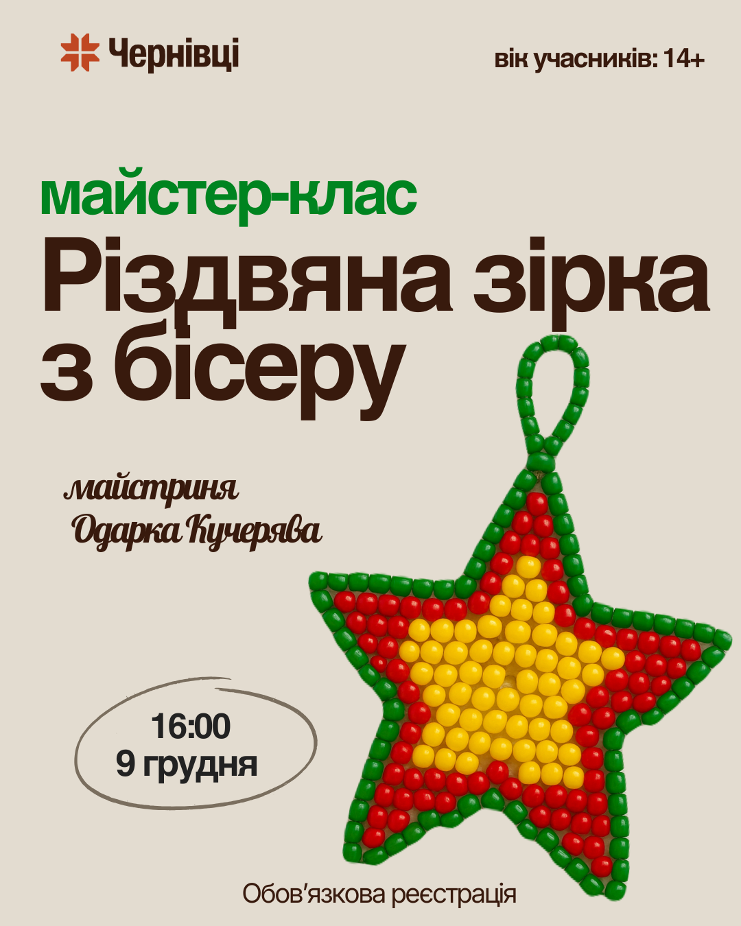 «Жіноча бісерна прикраса — Різдвяна Зірка». Майстер-клас з відомою буковинською майстринею Одаркою Кучерявою.