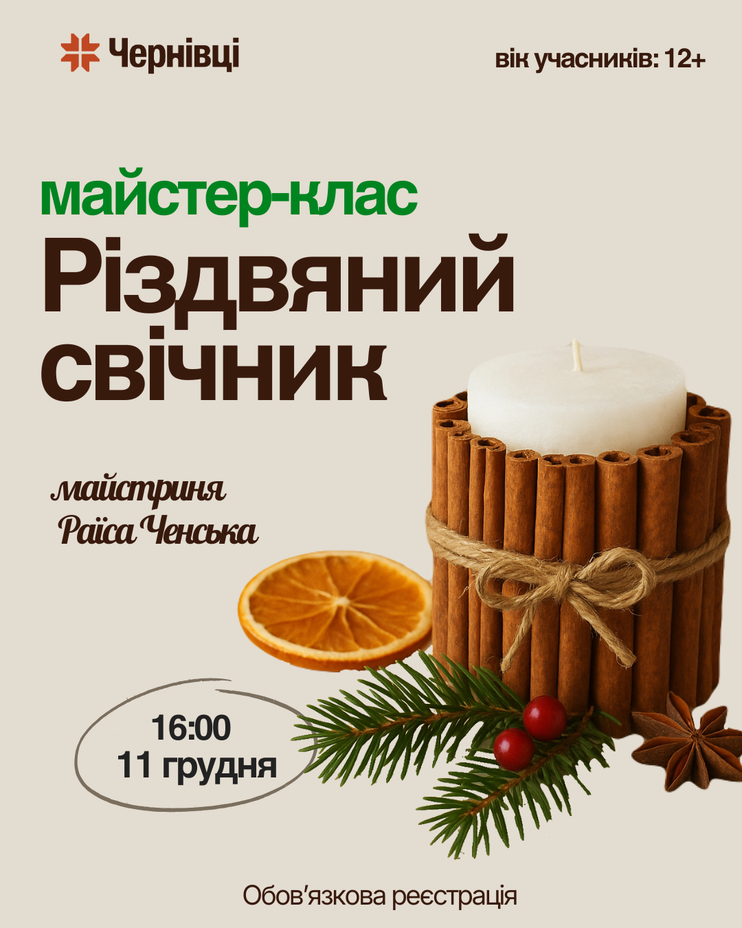 З 6 по 22 грудня щодня відбуватиметься щось цікаве. Управління туризму та промоції департаменту соцеконом розвитку та статегічного планування Чернівецької міської ради організовує низку подій. Участь у заходах безкоштовна, але за попередньою реєстрацією.