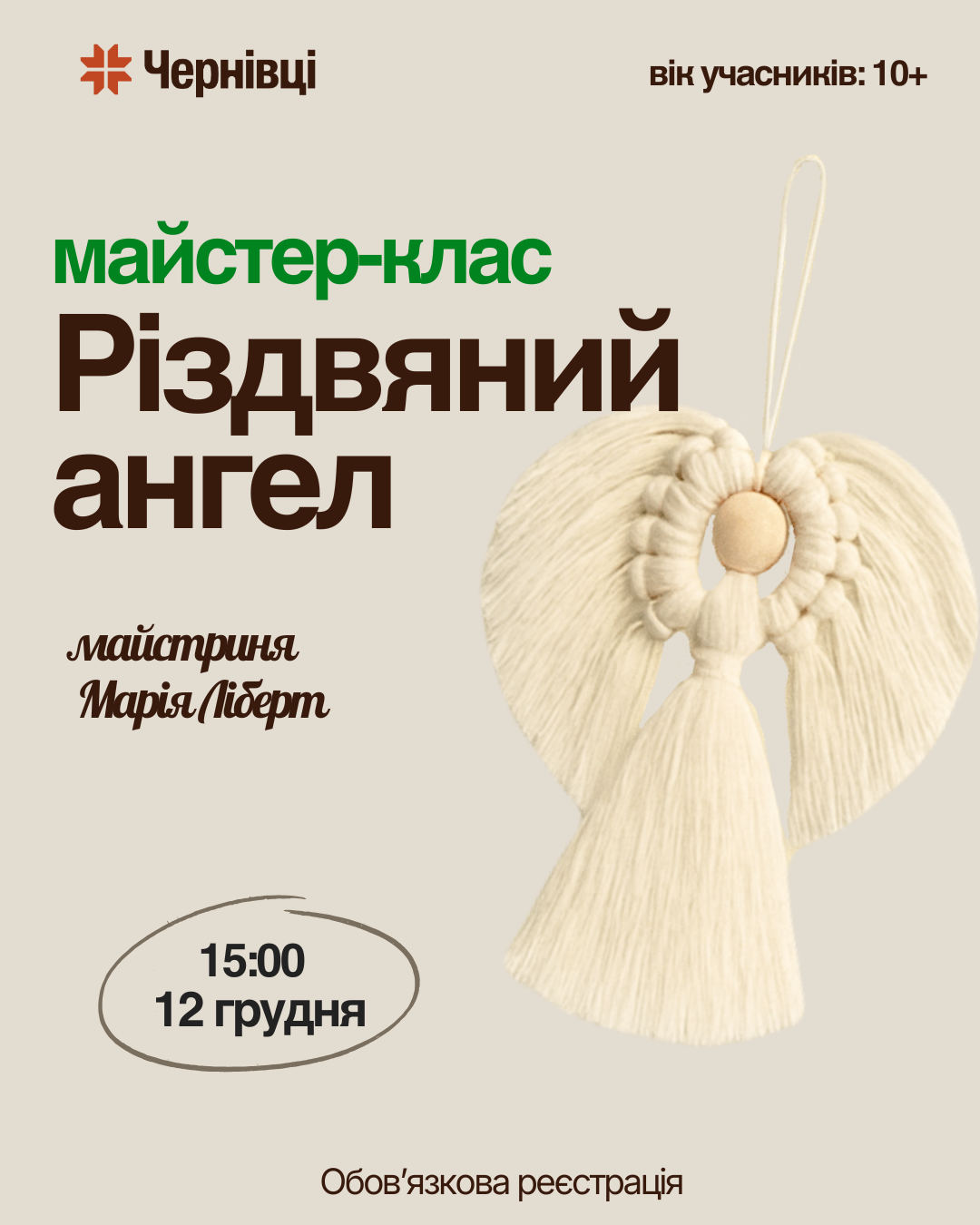 Майстер-клас «Різдвяний ангел». Під керівництвом Марії Ліберт створіть ніжну і затишну святкову прикрасу.