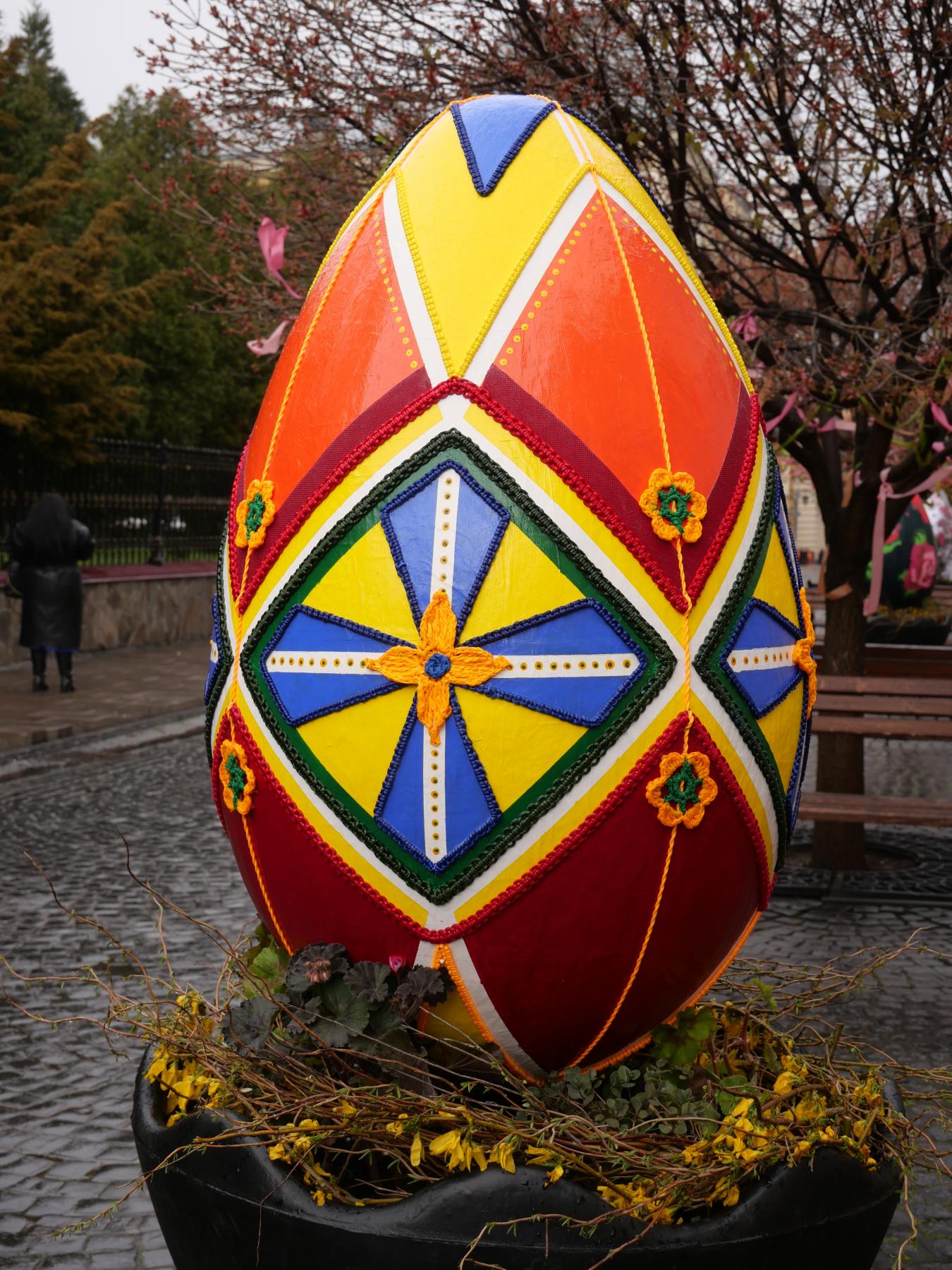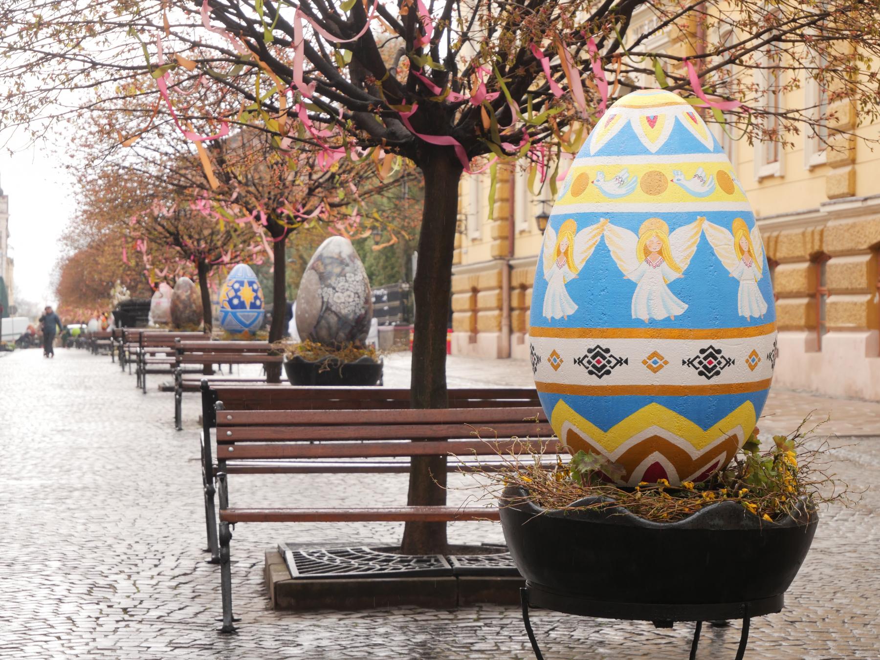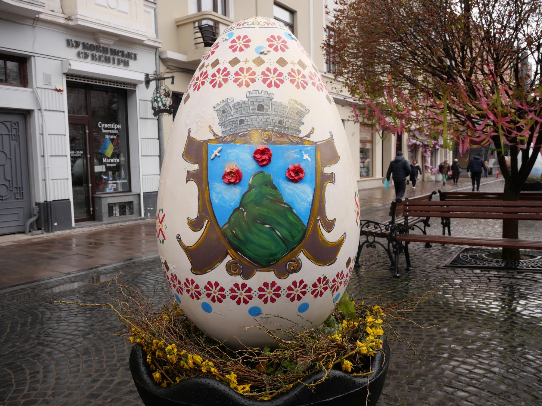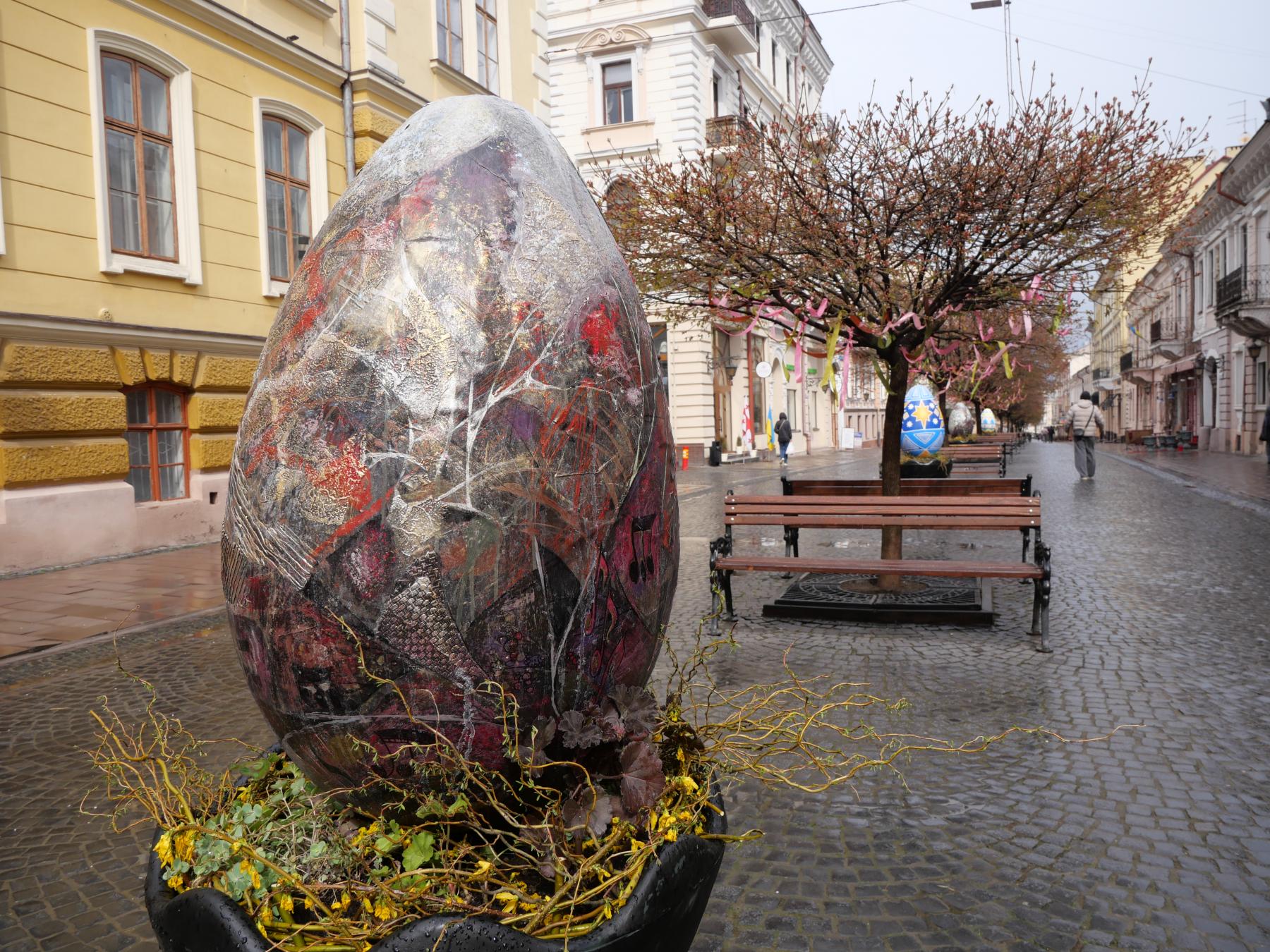 На вулиці Ольги Кобилянської представлено 10 унікальних авторських писанок, створених художниками, майстрами, викладачами та учнями мистецьких закладів і культурних центрів. Експозиція триватиме протягом тижня.
